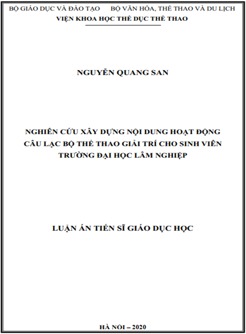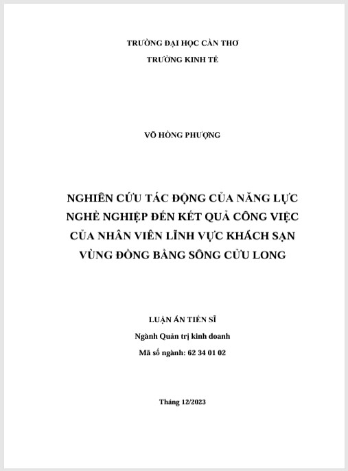 Họ và tên nghiên cứu sinh: HOÀNG THU THUỶ